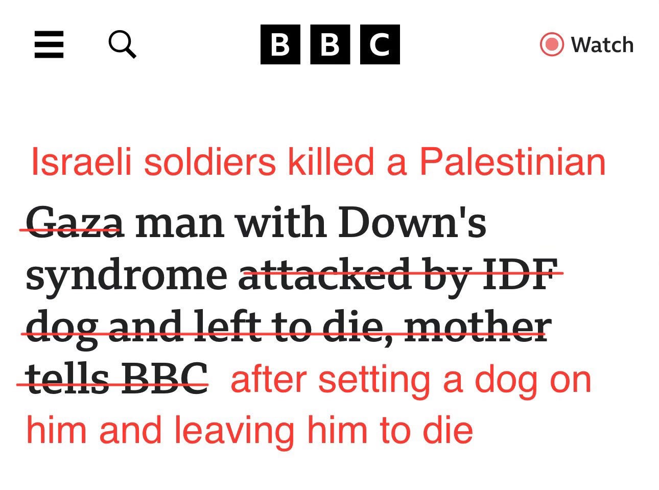 This is emotional baiting. It’s the manipulation of natural empathy. And it’s crucial, because war requires the public to feel a lot for one group and almost nothing for the other.